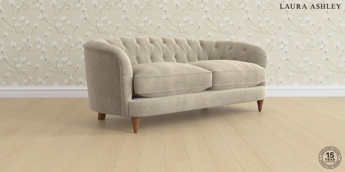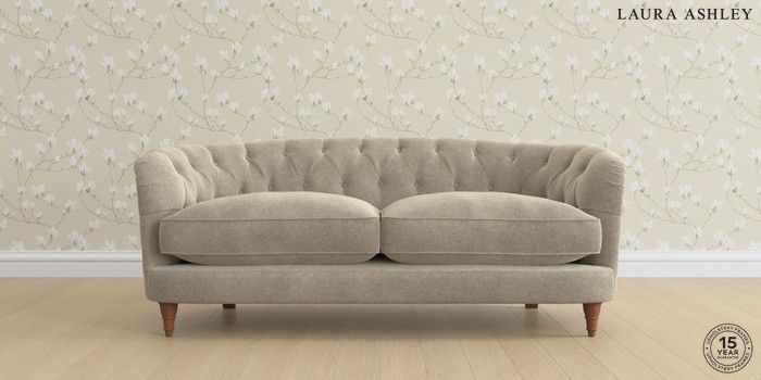7.0.3 Buy Hathersage by Laura Ashley 3 Seater Small Sofa Lundar Chenille Truffle Natural Low Turned - Teak from the Next UK online shop Click here to use our accessible website