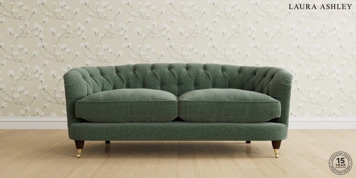 7.0.3 Buy Hathersage by Laura Ashley 3 Seater Small Sofa Nantmor Fern Green Low Brass Castor - Chestnut from the Next UK online shop Click here to use our accessible website