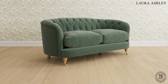 7.0.3 Buy Hathersage by Laura Ashley 3 Seater Small Sofa Nantmor Fern Green Low Brass Castor - Light Oak from the Next UK online shop Click here to use our accessible website