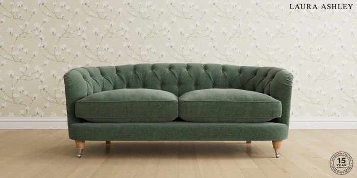 7.0.3 Buy Hathersage by Laura Ashley 3 Seater Small Sofa Nantmor Fern Green Low Chrome Castor - Light Oak from the Next UK online shop Click here to use our accessible website