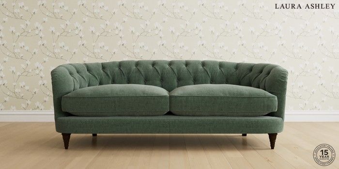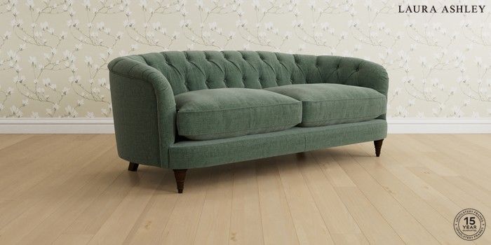 7.0.3 Buy Hathersage by Laura Ashley 3 Seater Small Sofa Nantmor Fern Green Low Turned - Chestnut from the Next UK online shop Click here to use our accessible website