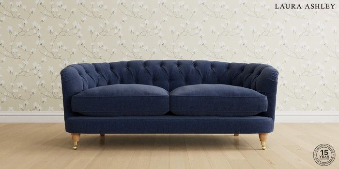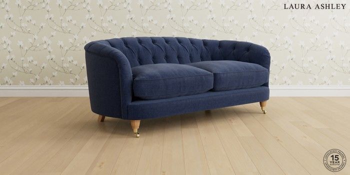 7.0.3 Buy Hathersage by Laura Ashley 3 Seater Small Sofa Nantmor Midnight Navy Low Brass Castor - Light Oak from the Next UK online shop Click here to use our accessible website