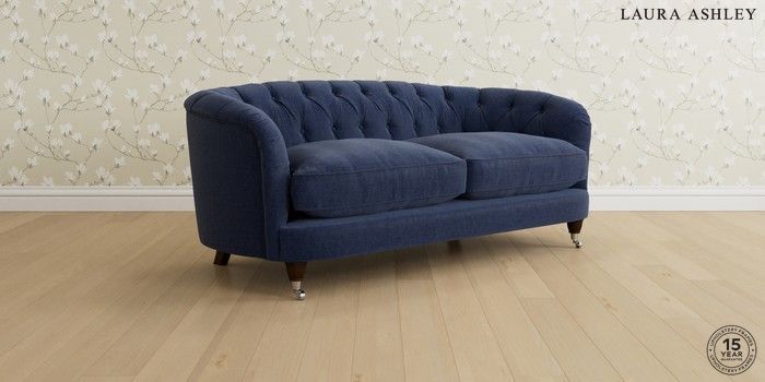 7.0.3 Buy Hathersage by Laura Ashley 3 Seater Small Sofa Nantmor Midnight Navy Low Chrome Castor - Chestnut from the Next UK online shop Click here to use our accessible website