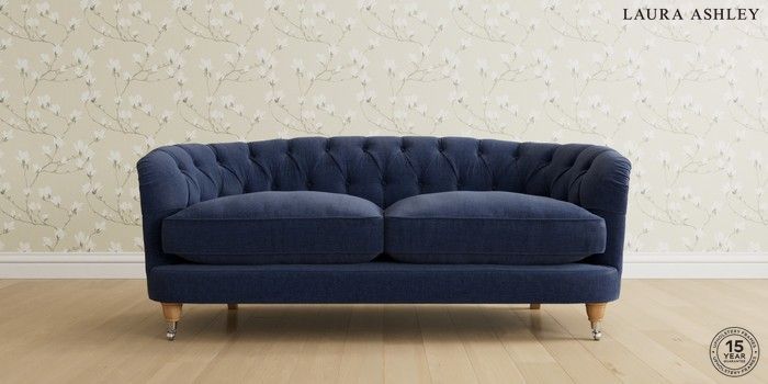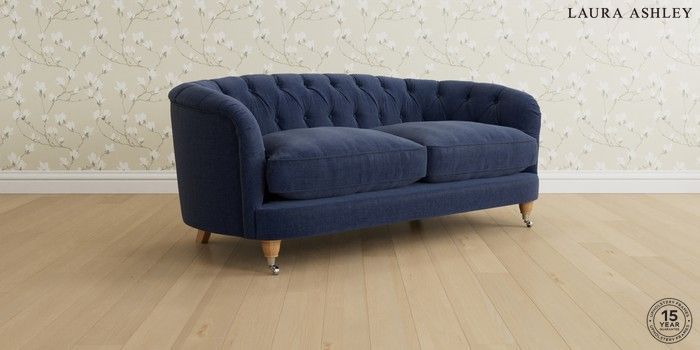7.0.3 Buy Hathersage by Laura Ashley 3 Seater Small Sofa Nantmor Midnight Navy Low Chrome Castor - Light Oak from the Next UK online shop Click here to use our accessible website
