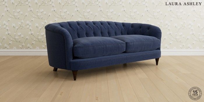 7.0.3 Buy Hathersage by Laura Ashley 3 Seater Small Sofa Nantmor Midnight Navy Low Turned - Chestnut from the Next UK online shop Click here to use our accessible website