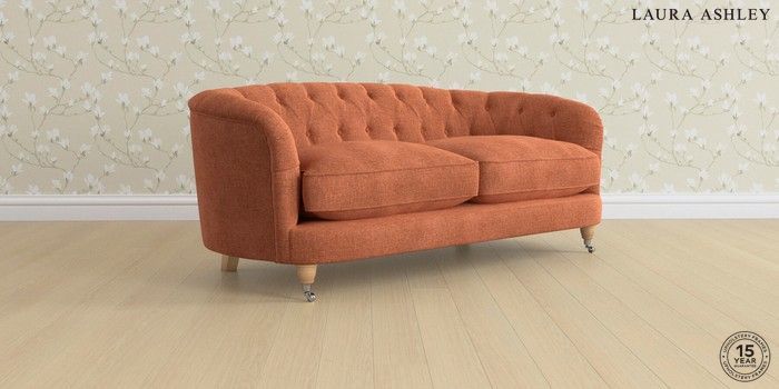 7.0.3 Buy Hathersage by Laura Ashley 3 Seater Small Sofa Nantmor Rust Orange Low Chrome Castor - Light Oak from the Next UK online shop Click here to use our accessible website