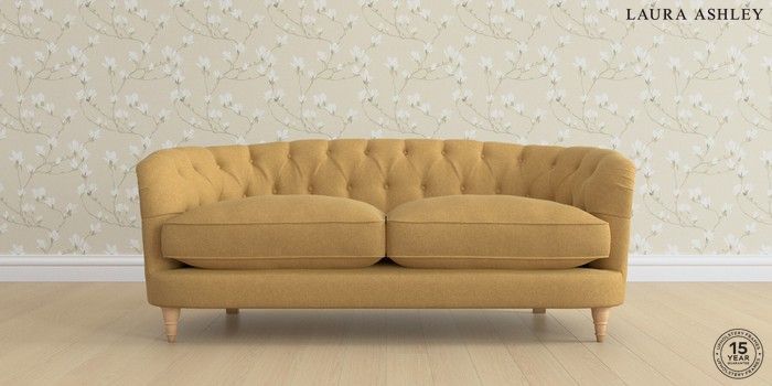 7.0.3 Buy Hathersage by Laura Ashley 3 Seater Small Sofa Peyton Ochre Yellow Low Turned - Light Oak from the Next UK online shop Click here to use our accessible website