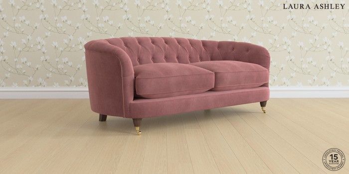 7.0.3 Buy Hathersage by Laura Ashley 3 Seater Small Sofa Peyton Plum Purple Low Brass Castor - Chestnut from the Next UK online shop Click here to use our accessible website