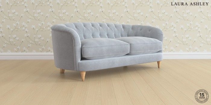 7.3.1 Buy Hathersage by Laura Ashley 3 Seater Small Sofa Peyton Powder Blue Low Turned - Light Oak from the Next UK online shop