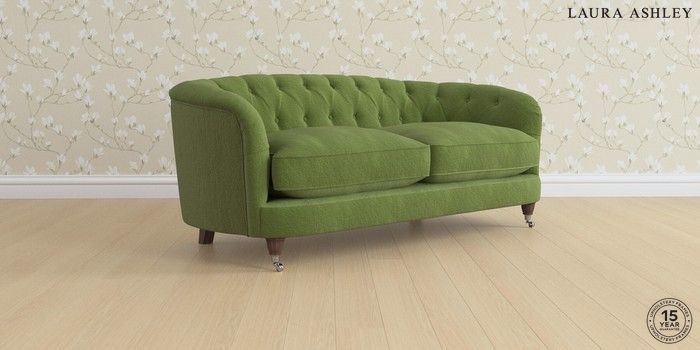 7.0.3 Buy Hathersage by Laura Ashley 3 Seater Small Sofa Tichwell Olive Green Low Chrome Castor - Chestnut from the Next UK online shop Click here to use our accessible website
