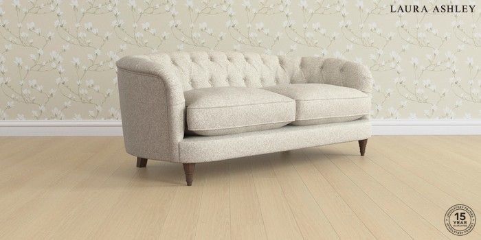 7.0.3 Buy Hathersage by Laura Ashley 3 Seater Small Sofa Tichwell Stone Natural Low Turned - Chestnut from the Next UK online shop Click here to use our accessible website