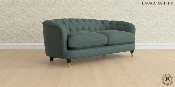 7.0.3 Buy Hathersage by Laura Ashley 3 Seater Small Sofa Wooton Forest Green Low Brass Castor - Black from the Next UK online shop Click here to use our accessible website