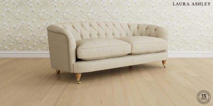 7.0.3 Buy Hathersage by Laura Ashley 3 Seater Small Sofa Wooton Natural Low Brass Castor - Light Oak from the Next UK online shop Click here to use our accessible website