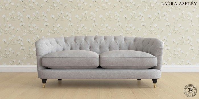 7.0.3 Buy Hathersage by Laura Ashley 3 Seater Small Sofa Wooton Pale Steel Grey Low Brass Castor - Black from the Next UK online shop Click here to use our accessible website