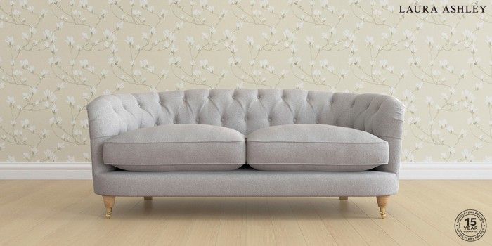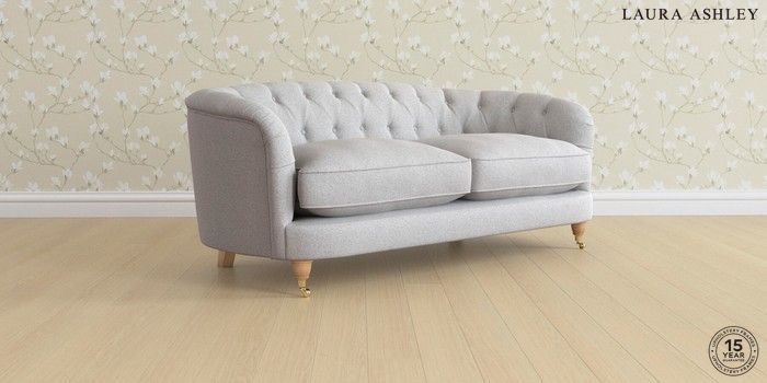 7.0.3 Buy Hathersage by Laura Ashley 3 Seater Small Sofa Wooton Pale Steel Grey Low Brass Castor - Light Oak from the Next UK online shop Click here to use our accessible website
