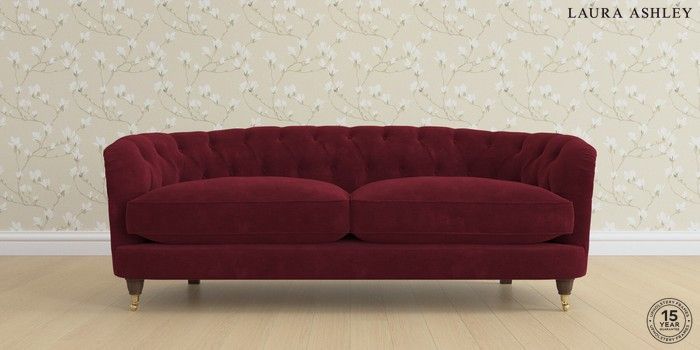 7.0.3 Buy Hathersage by Laura Ashley 3 Seater Sofa Alwyn Velvet Burgundy Red Low Brass Castor - Chestnut from the Next UK online shop Click here to use our accessible website
