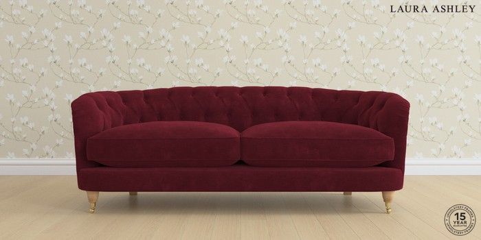 7.0.3 Buy Hathersage by Laura Ashley 3 Seater Sofa Alwyn Velvet Burgundy Red Low Brass Castor - Light Oak from the Next UK online shop Click here to use our accessible website