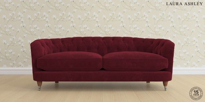 7.0.3 Buy Hathersage by Laura Ashley 3 Seater Sofa Alwyn Velvet Burgundy Red Low Chrome Castor - Teak from the Next UK online shop Click here to use our accessible website