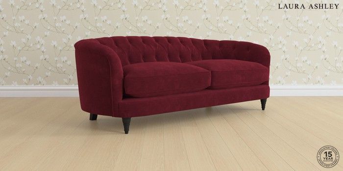 7.0.3 Buy Hathersage by Laura Ashley 3 Seater Sofa Alwyn Velvet Burgundy Red Low Turned - Black from the Next UK online shop Click here to use our accessible website