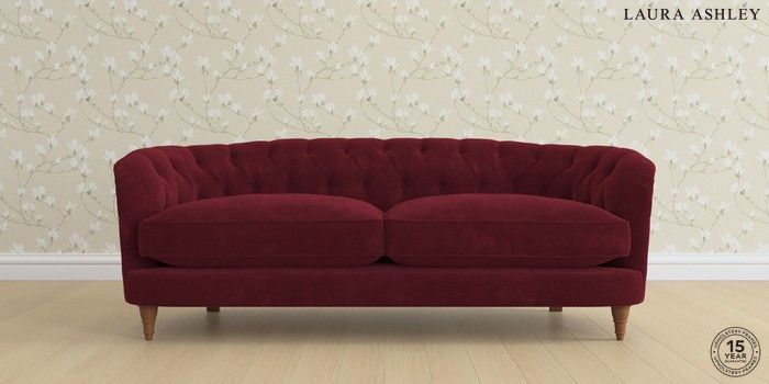 7.0.3 Buy Hathersage by Laura Ashley 3 Seater Sofa Alwyn Velvet Burgundy Red Low Turned - Teak from the Next UK online shop Click here to use our accessible website