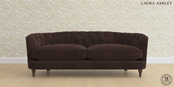 7.0.3 Buy Hathersage by Laura Ashley 3 Seater Sofa Alwyn Velvet Chocolate Brown Low Turned - Chestnut from the Next UK online shop Click here to use our accessible website
