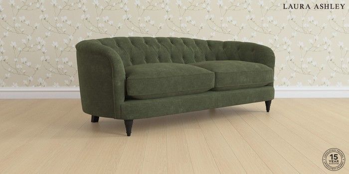 7.0.3 Buy Hathersage by Laura Ashley 3 Seater Sofa Alwyn Velvet Ivy Green Low Turned - Black from the Next UK online shop Click here to use our accessible website
