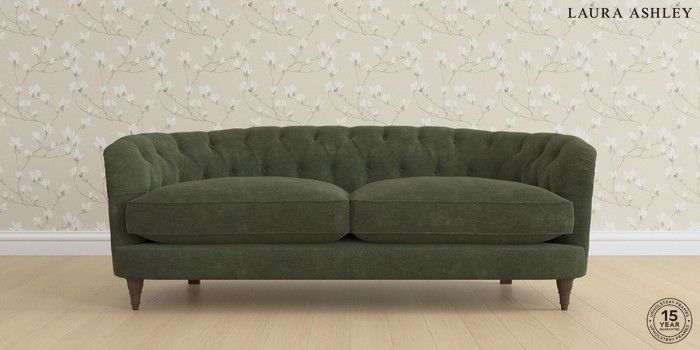 7.0.3 Buy Hathersage by Laura Ashley 3 Seater Sofa Alwyn Velvet Ivy Green Low Turned - Chestnut from the Next UK online shop Click here to use our accessible website