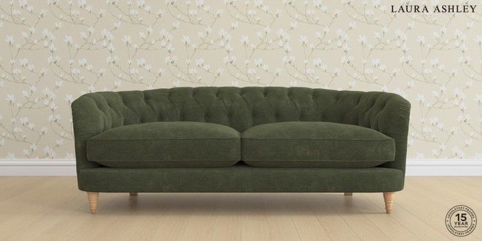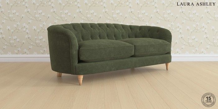 7.0.3 Buy Hathersage by Laura Ashley 3 Seater Sofa Alwyn Velvet Ivy Green Low Turned - Light Oak from the Next UK online shop Click here to use our accessible website