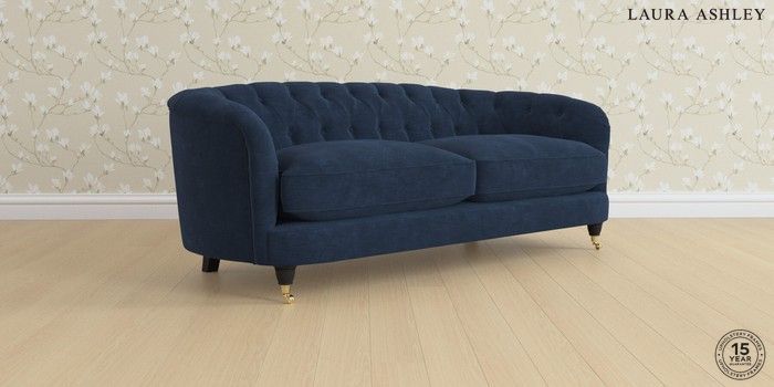7.0.3 Buy Hathersage by Laura Ashley 3 Seater Sofa Alwyn Velvet Midnight Navy Low Brass Castor - Black from the Next UK online shop Click here to use our accessible website