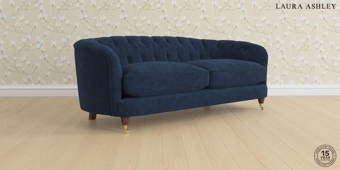 7.0.3 Buy Hathersage by Laura Ashley 3 Seater Sofa Alwyn Velvet Midnight Navy Low Brass Castor - Chestnut from the Next UK online shop Click here to use our accessible website