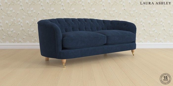7.0.3 Buy Hathersage by Laura Ashley 3 Seater Sofa Alwyn Velvet Midnight Navy Low Brass Castor - Light Oak from the Next UK online shop Click here to use our accessible website