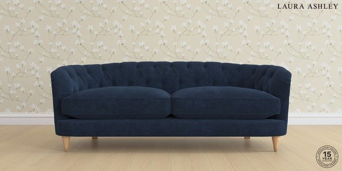7.0.3 Buy Hathersage by Laura Ashley 3 Seater Sofa Alwyn Velvet Midnight Navy Low Turned - Light Oak from the Next UK online shop Click here to use our accessible website