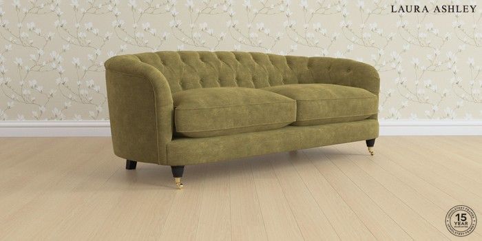 7.0.3 Buy Hathersage by Laura Ashley 3 Seater Sofa Alwyn Velvet Olive Green Low Brass Castor - Black from the Next UK online shop Click here to use our accessible website