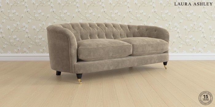 7.0.3 Buy Hathersage by Laura Ashley 3 Seater Sofa Alwyn Velvet Truffle Natural Low Brass Castor - Black from the Next UK online shop Click here to use our accessible website