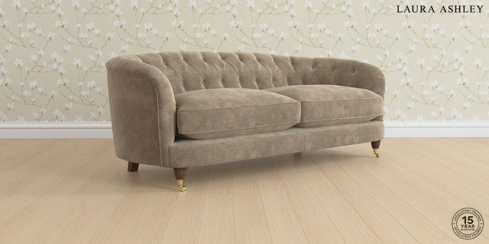 7.0.3 Buy Hathersage by Laura Ashley 3 Seater Sofa Alwyn Velvet Truffle Natural Low Brass Castor - Chestnut from the Next UK online shop Click here to use our accessible website