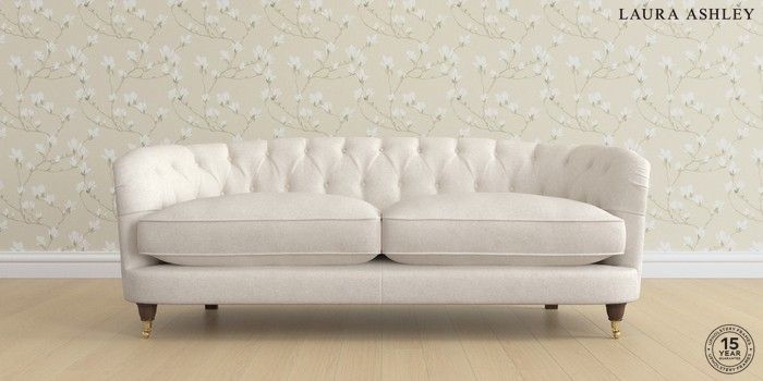 7.2.6 Buy Hathersage by Laura Ashley 3 Seater Sofa Anneliese Oyster Natural Low Brass Castor - Chestnut from the Next UK online shop Click here to use our accessible website