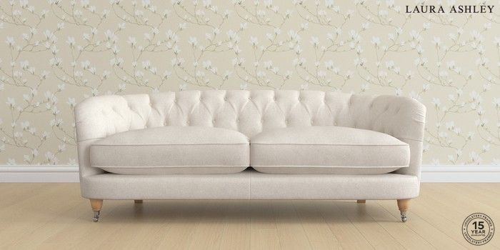 7.2.6 Buy Hathersage by Laura Ashley 3 Seater Sofa Anneliese Oyster Natural Low Chrome Castor - Light Oak from the Next UK online shop Click here to use our accessible website