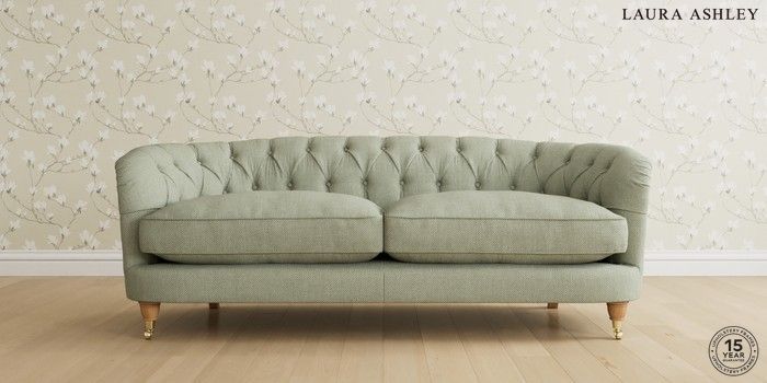 7.0.3 Buy Hathersage by Laura Ashley 3 Seater Sofa Anneliese Sage Green Low Brass Castor - Light Oak from the Next UK online shop Click here to use our accessible website