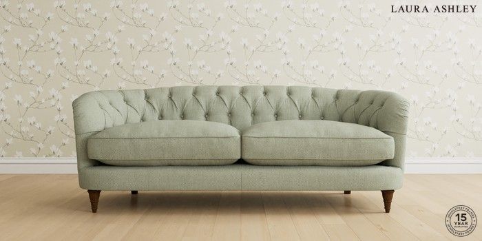 7.0.3 Buy Hathersage by Laura Ashley 3 Seater Sofa Anneliese Sage Green Low Turned - Teak from the Next UK online shop Click here to use our accessible website