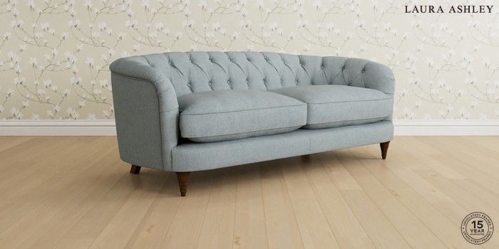 7.0.3 Buy Hathersage by Laura Ashley 3 Seater Sofa Anneliese Seaspray Blue Low Turned - Teak from the Next UK online shop Click here to use our accessible website