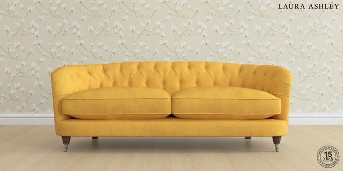 7.0.3 Buy Hathersage by Laura Ashley 3 Seater Sofa Bainton Ochre Yellow Low Chrome Castor - Chestnut from the Next UK online shop Click here to use our accessible website