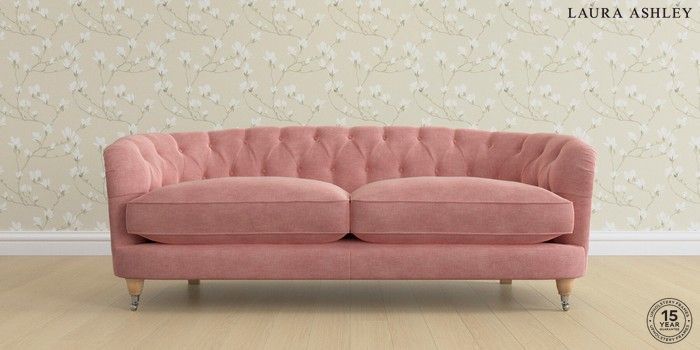 7.0.3 Buy Hathersage by Laura Ashley 3 Seater Sofa Bainton Old Rose Pink Low Chrome Castor - Light Oak from the Next UK online shop Click here to use our accessible website