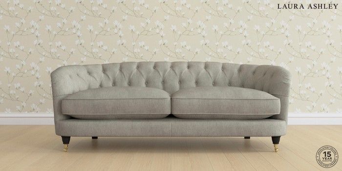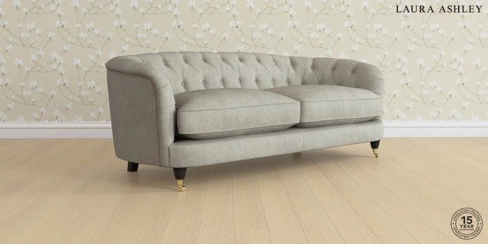 7.2.4 Buy Hathersage by Laura Ashley 3 Seater Sofa Bainton Pale Steel Grey Low Brass Castor - Black from the Next UK online shop Click here to use our accessible website