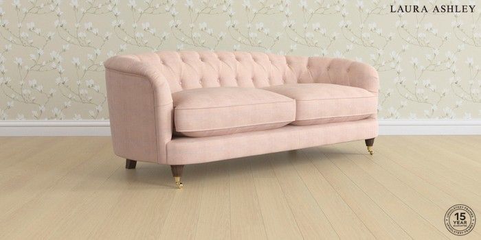 7.0.3 Buy Hathersage by Laura Ashley 3 Seater Sofa Edwin Chenille Blush Pink Low Brass Castor - Chestnut from the Next UK online shop Click here to use our accessible website