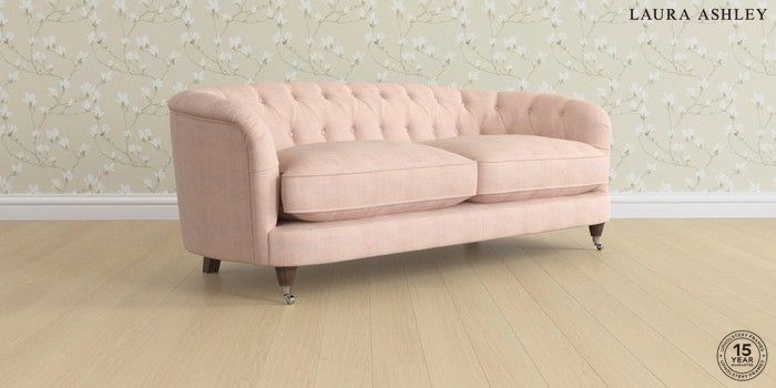 7.0.3 Buy Hathersage by Laura Ashley 3 Seater Sofa Edwin Chenille Blush Pink Low Chrome Castor - Chestnut from the Next UK online shop Click here to use our accessible website