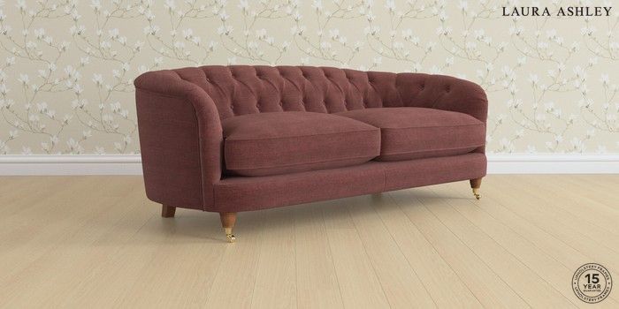7.0.3 Buy Hathersage by Laura Ashley 3 Seater Sofa Edwin Chenille Burgundy Red Low Brass Castor - Teak from the Next UK online shop Click here to use our accessible website