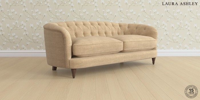 7.0.3 Buy Hathersage by Laura Ashley 3 Seater Sofa Edwin Chenille Gold Natural Low Turned - Chestnut from the Next UK online shop Click here to use our accessible website