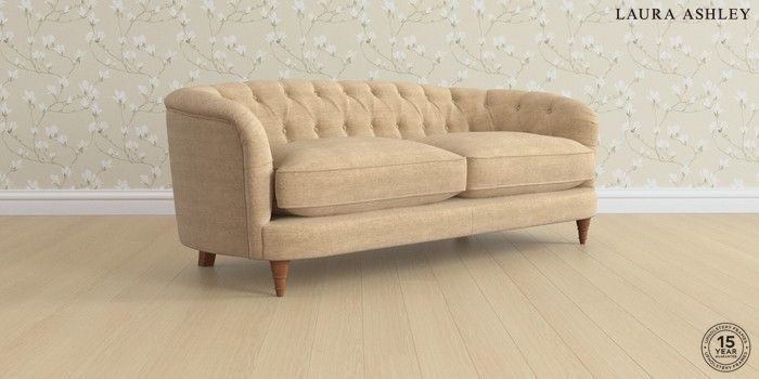 7.0.3 Buy Hathersage by Laura Ashley 3 Seater Sofa Edwin Chenille Gold Natural Low Turned - Teak from the Next UK online shop Click here to use our accessible website