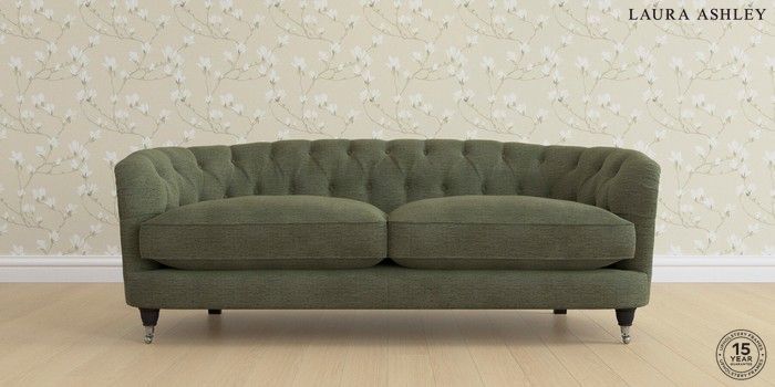 7.0.3 Buy Hathersage by Laura Ashley 3 Seater Sofa Edwin Chenille Hedgerow Green Low Chrome Castor - Black from the Next UK online shop Click here to use our accessible website