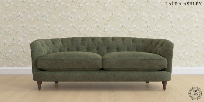 7.0.3 Buy Hathersage by Laura Ashley 3 Seater Sofa Edwin Chenille Hedgerow Green Low Turned - Chestnut from the Next UK online shop Click here to use our accessible website